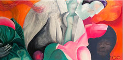 Drawing from current events and personal experiences. Back has a natural desire to tell stories. A composition could be a figure conveying an emotion or moment, a geometrically infused landscape, or the intricate details and beauty of an eye. With her signature style, Back extends the narrative of her composition by including text, photographs, or words.